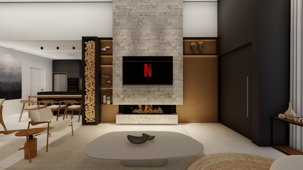 Living 2 ambientes com lareira.