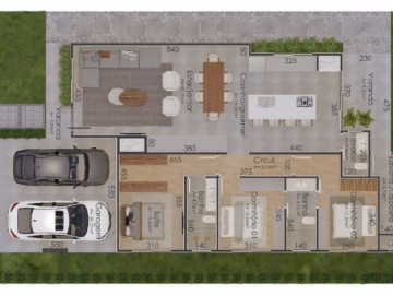 Garagem coberta para 2 carros lado a lado